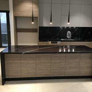 - Sản phẩm đá Vicostone Nero Marquina nổi bật với những đường vân rạn, như những tia sét đánh mạnh mẽ trải dài toàn tấm. Các đường vân này càng trở nên nổi bật hơn với màu trắng tương phản hoàn toàn bề mặt mô gần như đen một cách tuyệt đối đầy huyền bí.