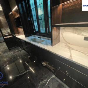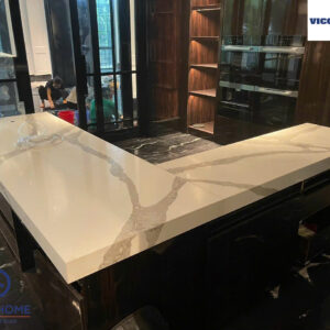 Lấy cảm hứng từ sản phẩm Calacatta tự nhiên, dòng đá cẩm thạch nổi tiếng của nước Ý – được mệnh danh là nữ hoàng của đá tự nhiên, Vicostone đã cho ra mắt sản phẩm Calacatta từ đá thạch anh cao cấp vào năm 2011 tại triển lãm Marmomacc, trở thành sản phẩm đá nhân tạo đầu tiên trên thế giới mô phỏng trọn vẹn vẻ đẹp của Calacatta. Trên nền màu trắng tựa cẩm thạch, những đường vein mạnh mẽ rắn rỏi như những dòng chảy mắc ma triệu năm chạy xuyên suốt tấm đá.
