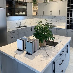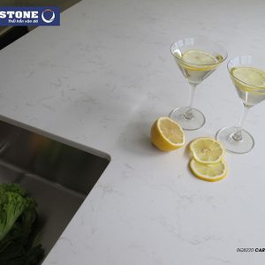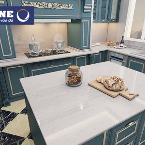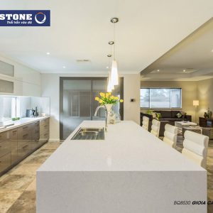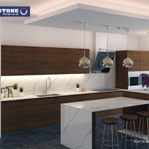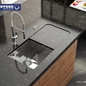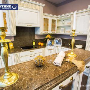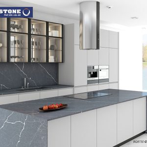 Dòng sản phẩm với thiết kế các dải hạt lớn tạo hiệu ứng trầm tích theo thời gian, tổng thể toàn tấm mang màu trung tính, dễ dàng phối hợp với các loại tủ bếp.